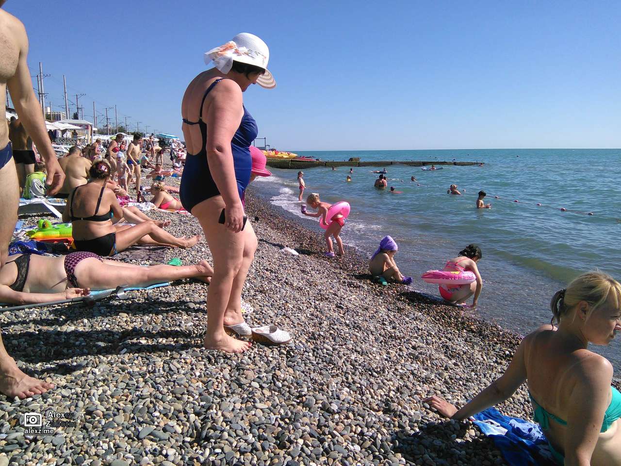 Более лёгкая одежда понадобилась потому, что сегодня наконец-то пошёл на море плавать 🙂 Погода сегодня очень жаркая, так что решил никуда не ездить и устроить морской день. Хотя часть людей поехала на Роза Хутор и по другим местам.