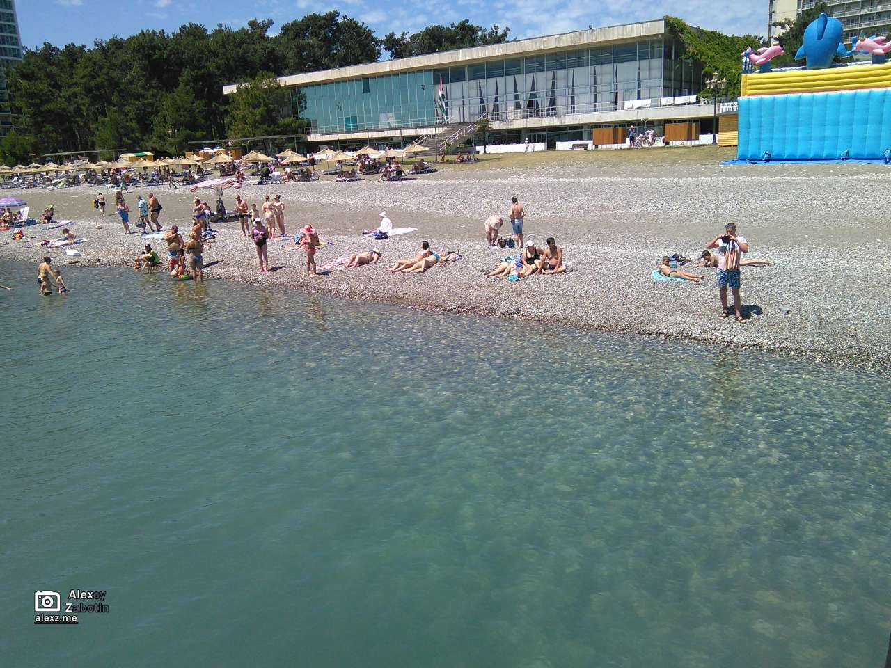 Затем поехали в Пицунду, и неожиданно оказался на пляже, где тоже уже бывал (фото с пирса, зацените прозрачность воды!). Видимо маршрут у всех приблизительно одинаковый.