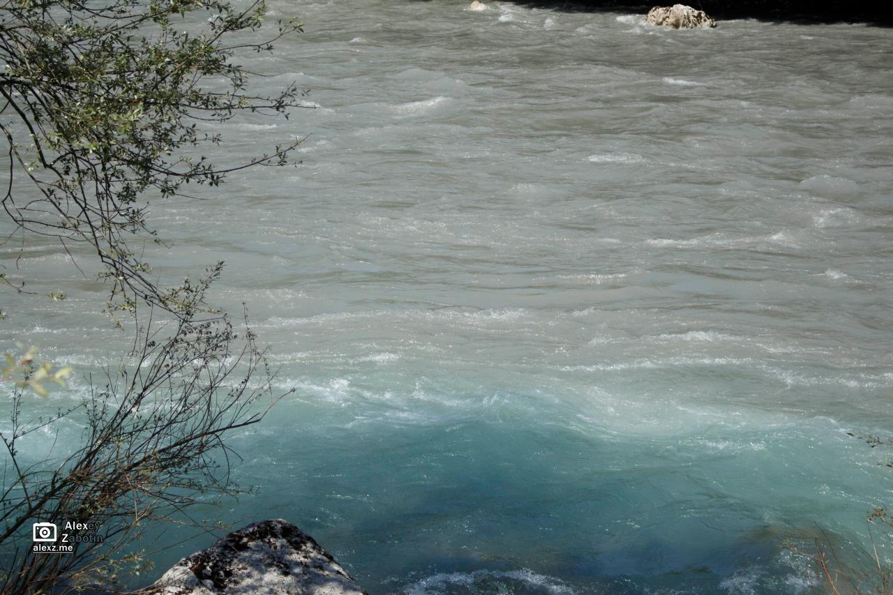 Далее поехали в Рицинский реликтовый национальный парк на Голубое озеро. Вышел, опять не взяв коляску — идти/ехать было особо и некуда, немного пофоткал водный поток,