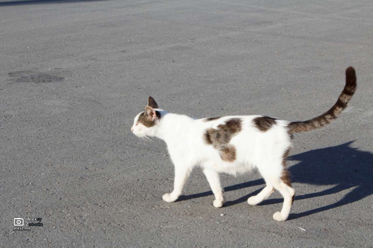 Дальше был Новоафонский монастырь. Непосредственно до входа доехали в кузове крытого грузовика, заходил в который я последним, и поэтому сел на лавку впереди, лицом назад, что было достаточно экстремально — держаться же толком не за что. Раньше никогда так не катался. Внутрь монастыря не заходил, изрядно уже задолбавшись столько без коляски костылять. Но хоть пофоткал спокойно. Встретилась собака-инвалид, скакавшая на трёх лапах. Жаль, но сфоткать не удалось. Но зато фото котэ есть. 🙂