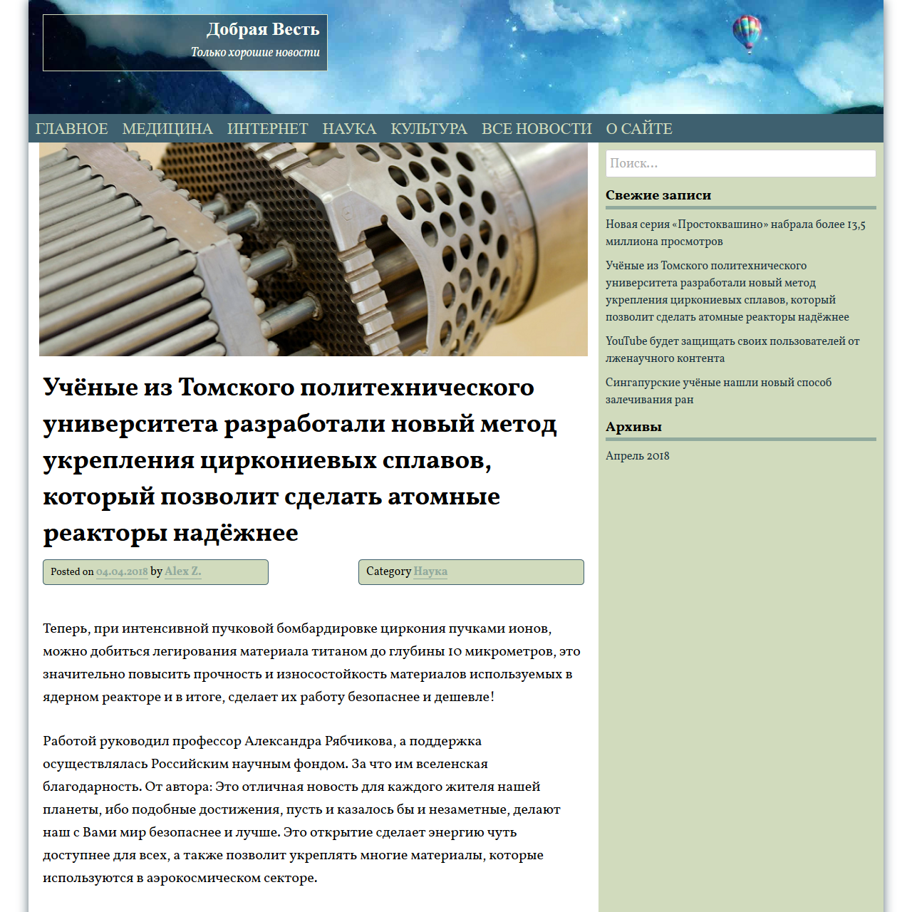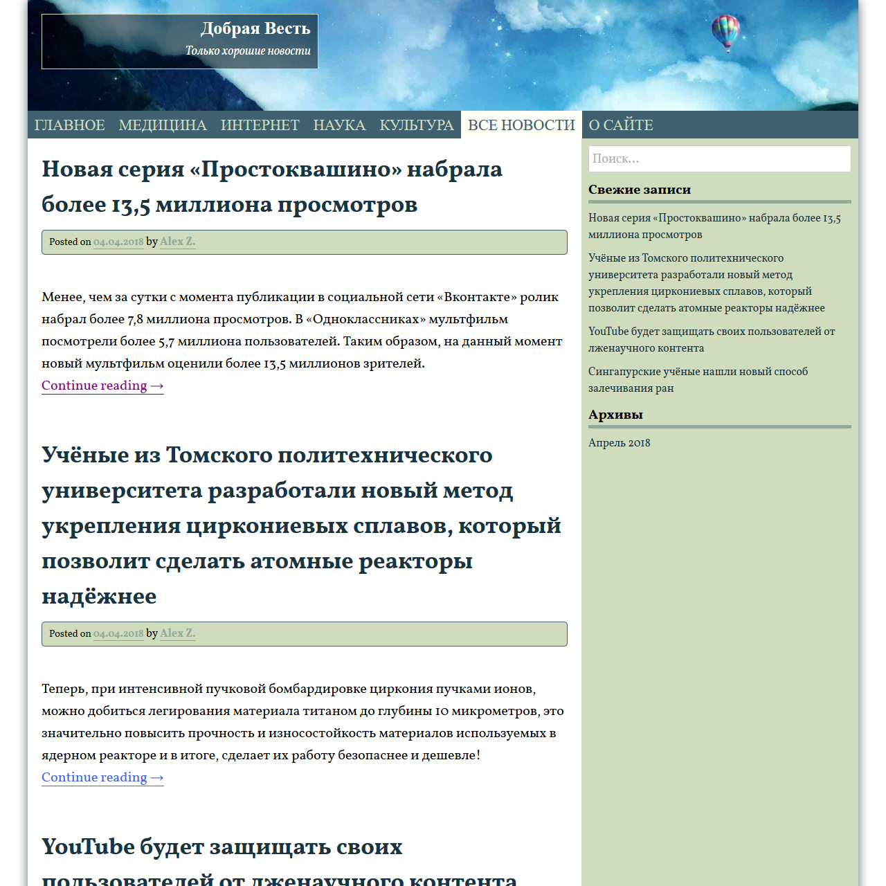 Сайт: Добрая Весть Адрес: dobraya-vest.tk CMS: WordPress Дата создания: 2 апреля 2018