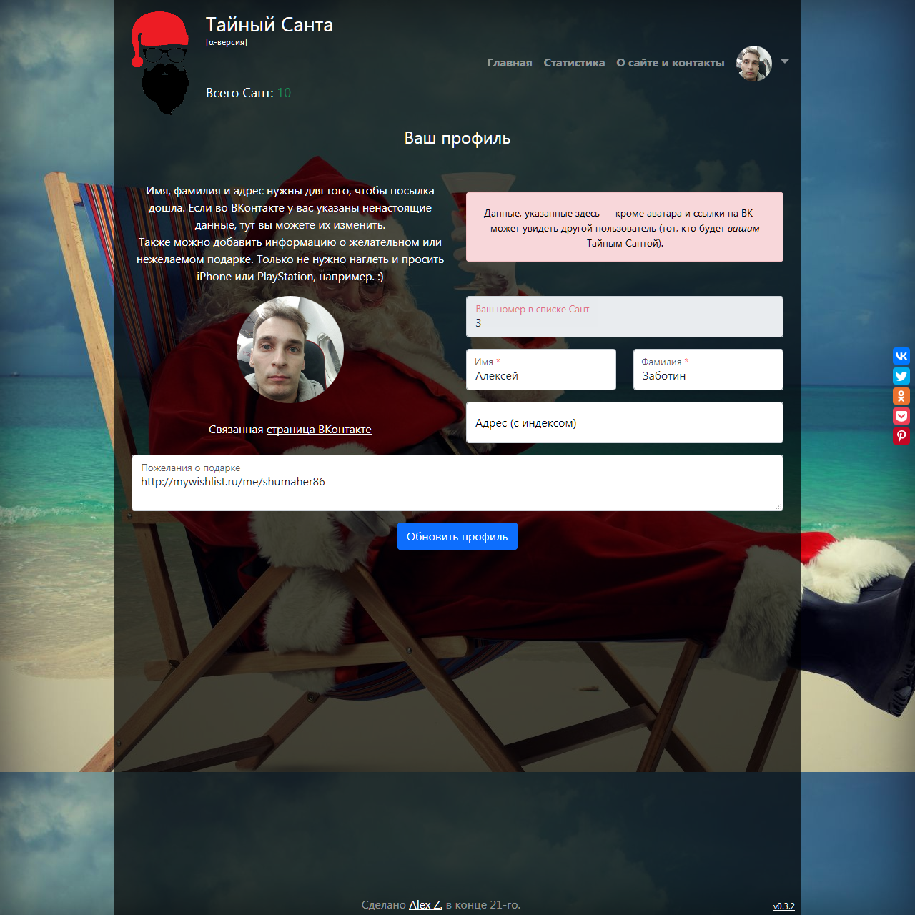 Сайт: Тайный Санта Адрес: secret-santa.xyz Дата создания: 26 ноября 2021